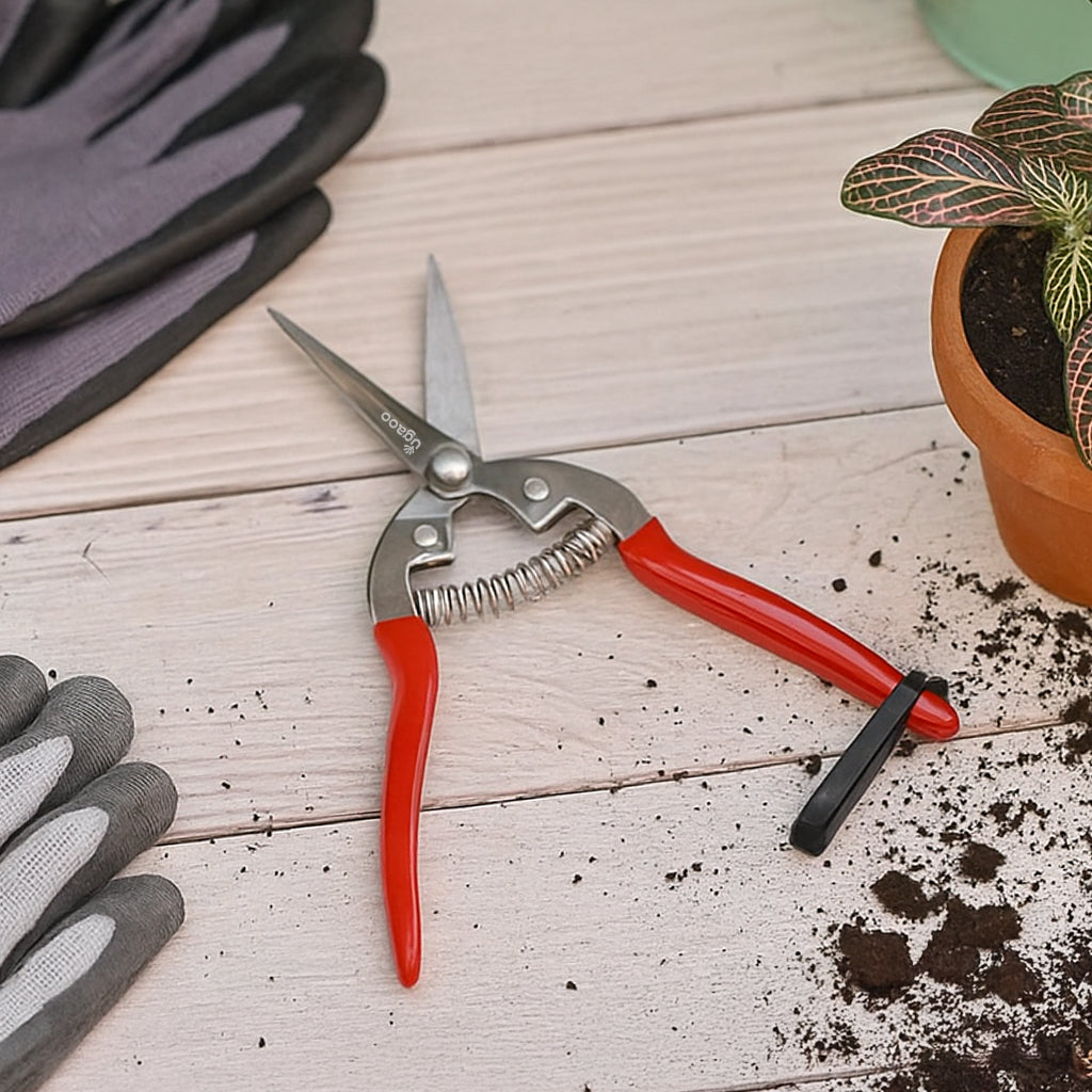 The Ugaoo Handy Clipper Pruner is a small and durable tool that is mainly used for Bonsai tree cutting or for cutting flowers. The very useful narrow SK5 Japanese blades of this secateur cut very smoothly. It has a fixed blade with a hard PVC grip.